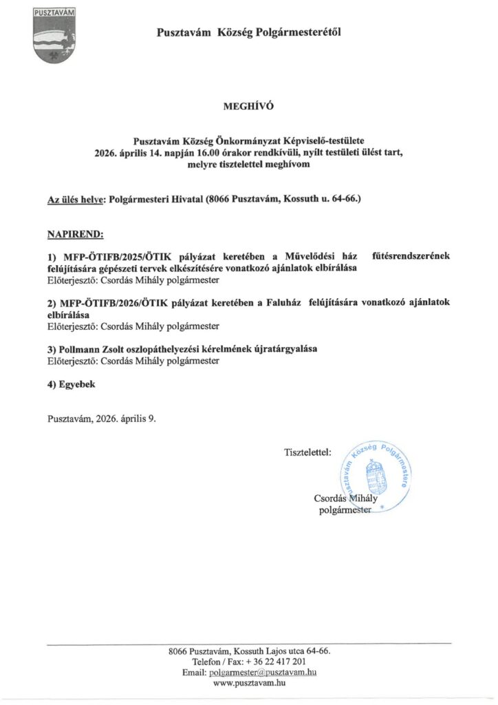 2026.04.14. 16:00. Polgármesteri Hivatal